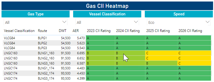 Please click on the image above or click here to launch our CII Gas Heatmap.