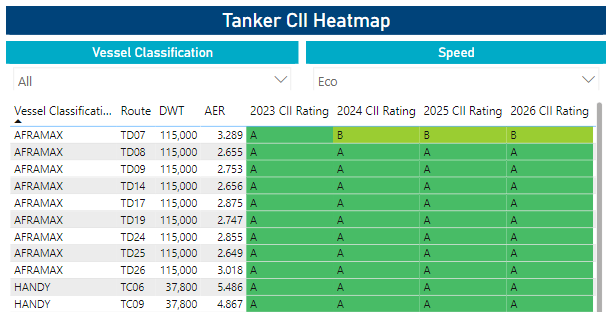 Please click on the image above or click here to launch our CII Tanker Heatmap.